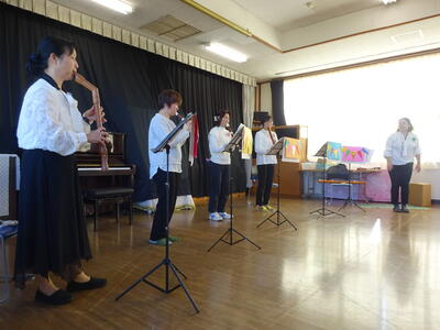 12/2 近隣の保育園さんもお招きしてみんなでドレミさんの演奏会に参加しました。『ドレミのうた』『あんたがたどこさ』の輪唱、『サンタがまちにやってくる』の合奏など、どれも素敵で、楽しく聴かせていただきました。最後は、子どもたちも鈴を使ってみんなで合奏♪鈴の音がクリスマスソングにぴったりで、気持ちもワクワクしながら楽しんで合奏していました。みんなでドレミさん、どうもありがとうございました。