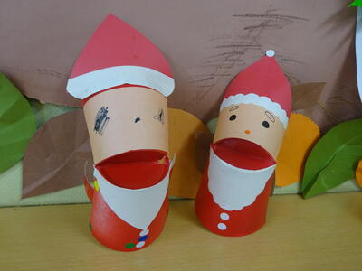 11/29 近隣の保育園さんと一緒に、紙コップでサンタさんを作りました。ひげや帽子、顔はどんなふうにしょうかなー?と考えながら作り、お喋りできるサンタさんが完成しました♪