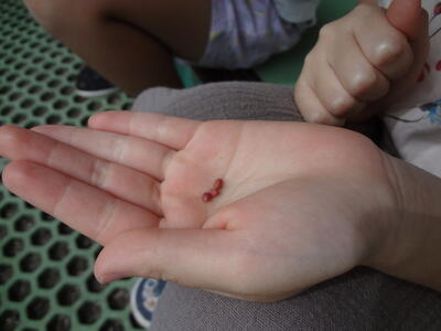 見てみると赤い種でした。「わ~本当だ~」とびっくりしていました。